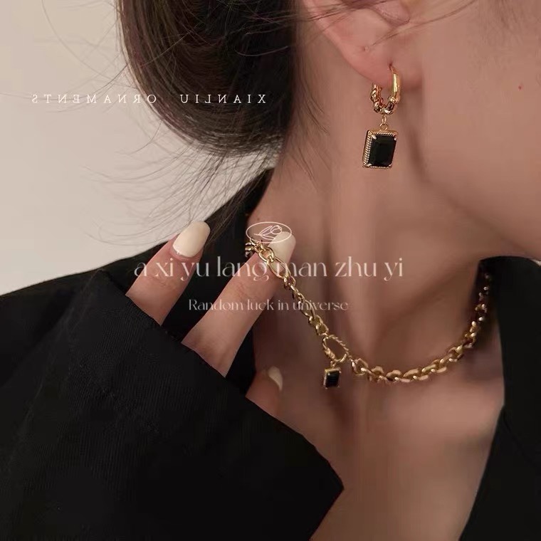 韩国东大门小众设计感复古黑色锆石耳扣耳钉轻奢气质百搭耳环女热门设计联盟服务商